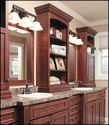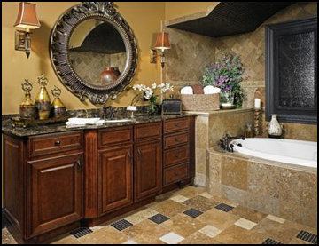 Like the name says Dream Kitchen and Baths can help you create your dream bathroom. From an upgrade like granite countertops on your vanity to a full make over complete with modern sink and fixtures, new tile floors, and tile shower as well as beautiful solid wood bathroom cabinets.
